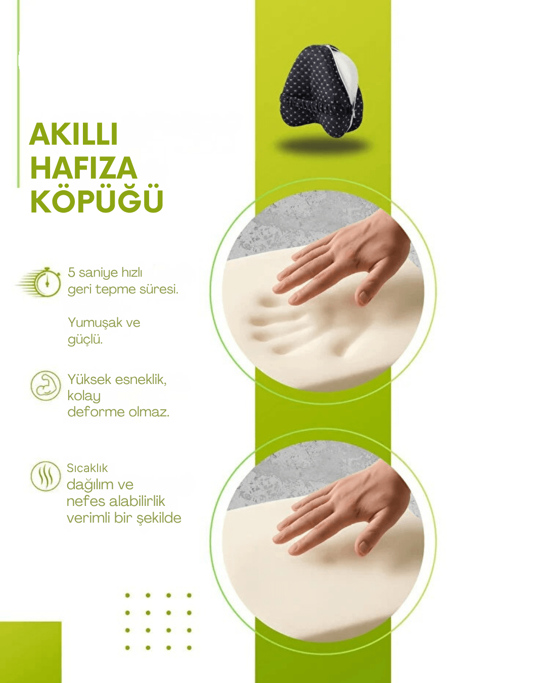 Evet. Ortopedik memory foam, vücudunuzun şekline göre uyum sağlayarak baskı noktalarını azaltır. Bel fıtığı, siyatik, diz ağrısı ve boyun ağrısı yaşayan kullanıcılar için destekleyici bir uyku deneyimi sunar. Ancak tıbbi tedavinin yerini tutmaz, destekleyici bir üründür.